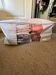 My blankets and bedspreads are safely protected from dust and moisture with this organizer. It is really spacious and easy to store anything. Great product!